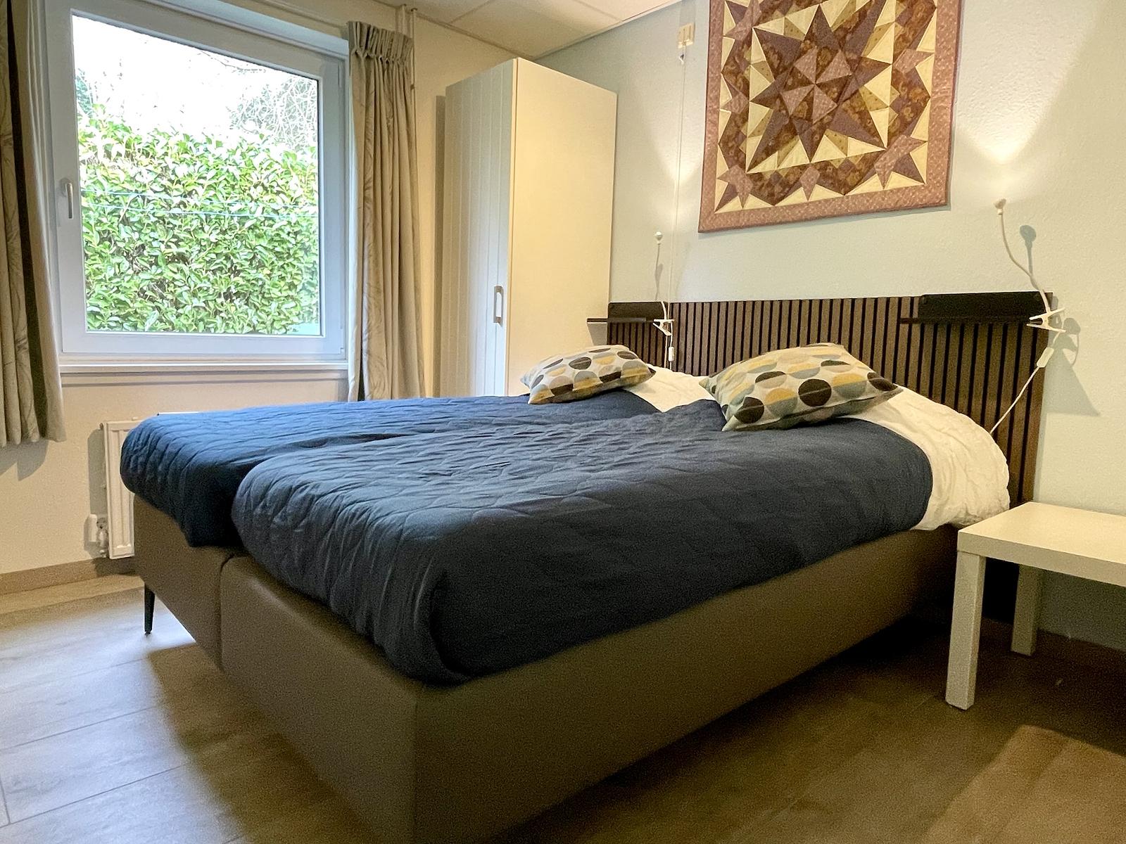 On the terrace is a dining table and chairs, also suitable for sunbathing somewhere in the garden. There is a covered area with a table and chairs near the shed. The shed has room for 4 bikes and there is electricity to charge your bike. A maximum of 2 cars can be parked in front of, or inside the holiday home's entrance gate. It is not possible to charge electric cars at the house. The house is equipped with a water softener.